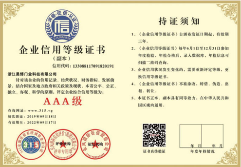 公司一直以來嚴(yán)格執(zhí)行ISO9001質(zhì)量體系和ISO14001環(huán)境管理體系標(biāo)準(zhǔn),建立了完備的科研、開發(fā)、生產(chǎn)、銷售服務(wù)體系。公司是浙江省門業(yè)協(xié)會會員單位,江山門業(yè)協(xié)會理事單位,中國木材與木制品流通協(xié)會會員單位,江山市消防協(xié)會副會長單位。